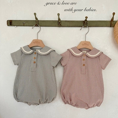 - 라임앤블루.썸머크래커체크반팔슈트