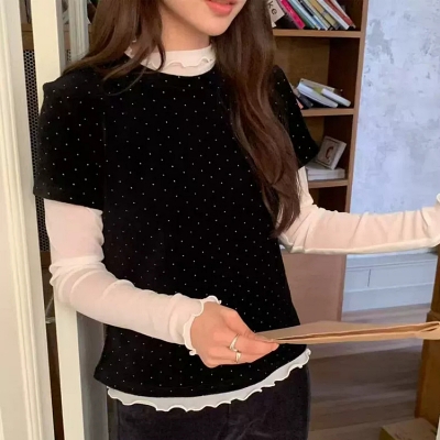 on.[T363]도트벨벳반팔티셔츠