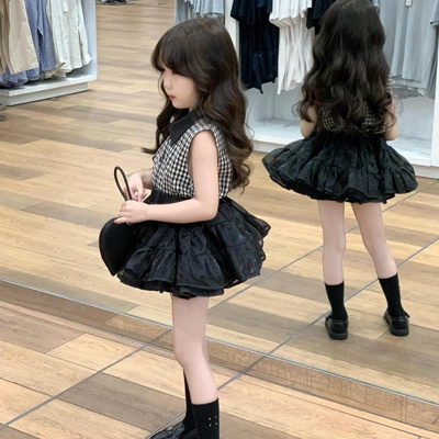 비다이어리.블랙체크민소매블라우스
